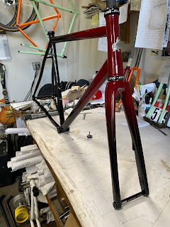 This is my top of the heap steel road frame package-frame of Columbus spirit/life mix with Enve fork painted to match, King headset and Jen Green head badge. All this for under $3,000 except that a second paint color might be a bit more. These frames are under 4 lbs. so building up a light bike with a steel frame is reasonable.