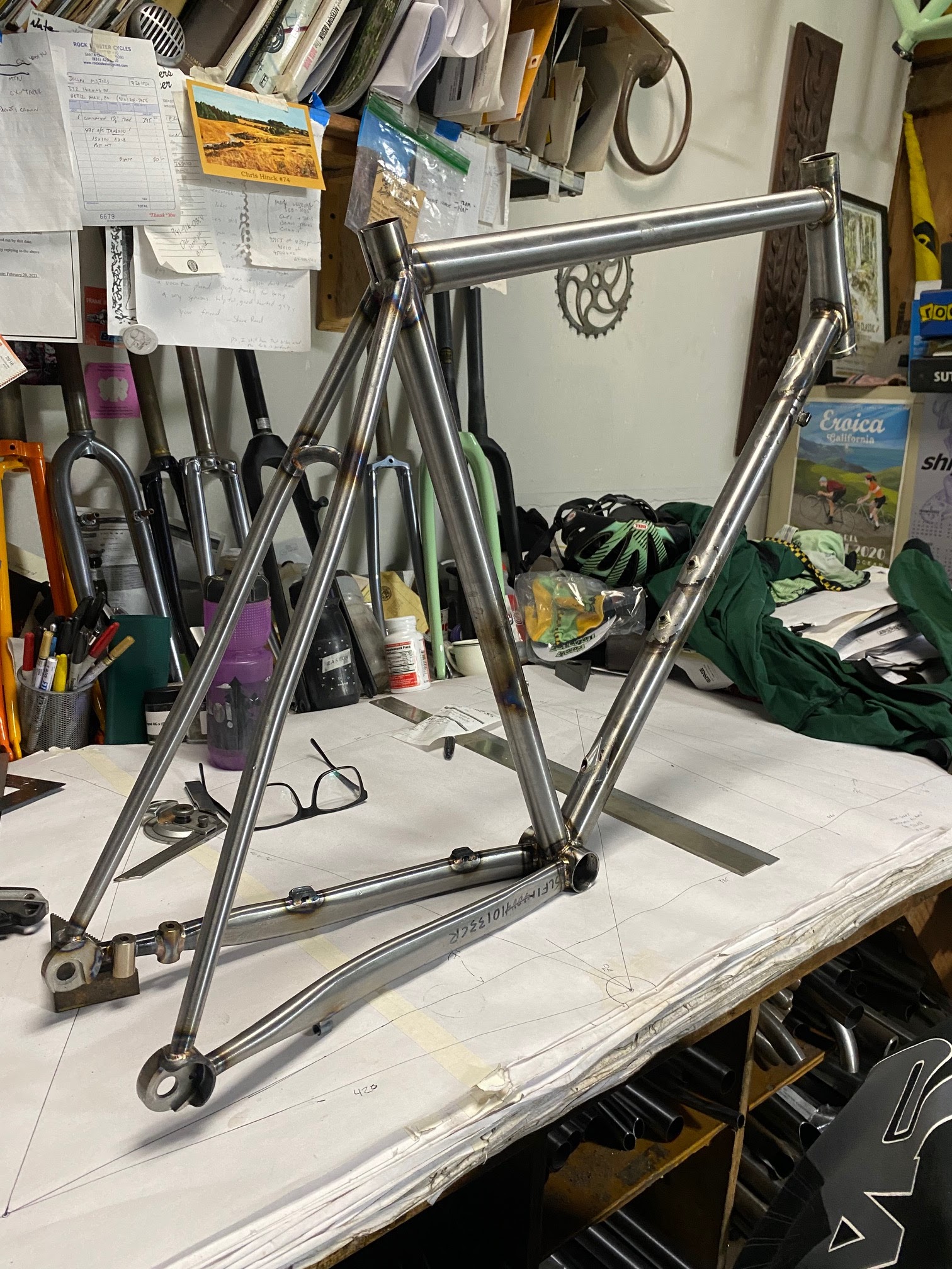 This customer asked for smaller tube diameters and a level top tube. He was very specific on all the numbers and gave me a drawing That I followed to the mm. The frame may be a bit of a throwback on those features but it will be set up with wireless shifting, a carbon fork and disc brakes so it does depart from the rim brake frames I have built for hi in the past. I'm really happy to be building another one for him.Wednesday, October 16, 2024